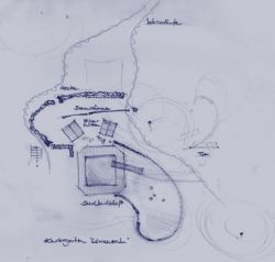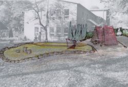 In Zusammenarbeit mit der Elterninitiative entsteht ein Abenteuer-Spielplatz. Anforderung war der Einsatz von einfachen und natürlichen Materialien mit der Möglichkeit zum Selbstbau. Hinzu kam die Arbeit mit dem Hangwasser, welches in Naturstein-Rinnen geleitet und gefasst werden muss.